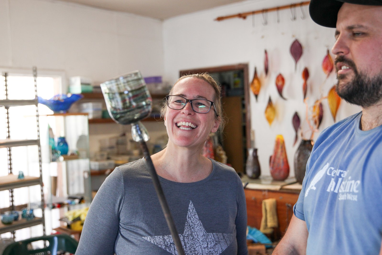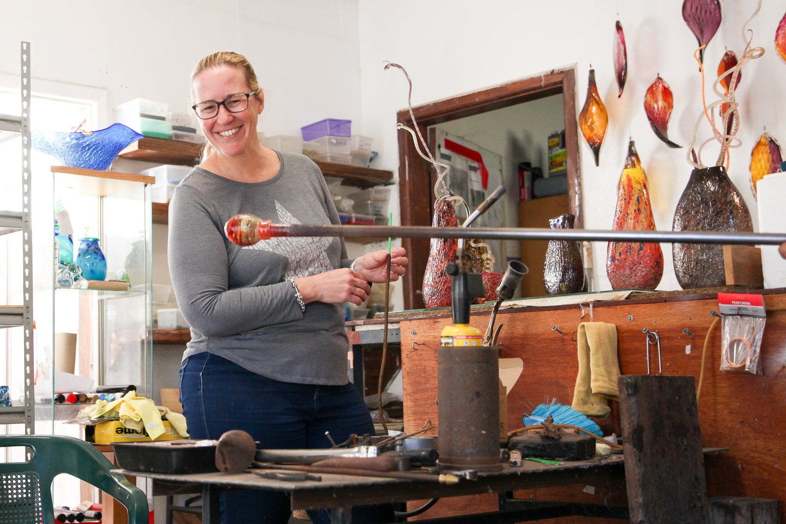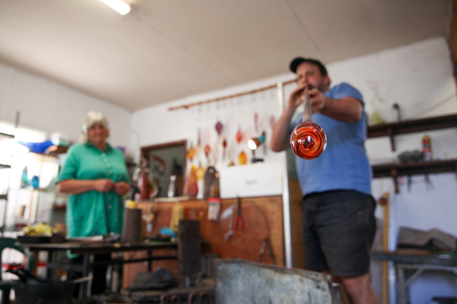 Open by appointment, he and his partner Margot Edwards evolved the business from a public demonstration studio/main street gallery to a smaller home-based studio, which now has a primary focus on offering experiential hot glass workshops run by their son, glass artist Ned Reilly.