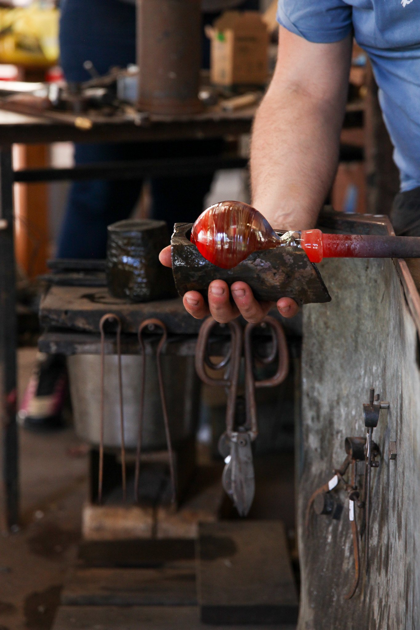 You’ll never forget the experience of spending half an hour or more with Ned, as he involves you in the process of making your own stemless glass and shares stories of glass techniques, creativity and art glass history in answer to your fascination.
